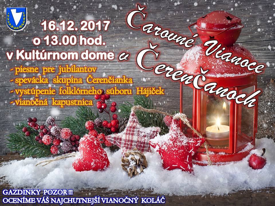 Srdečne Vás pozývame na Čarovné Vianoce v Čerenčanoch, ktoré sa uskutočnia dňa 16.12.2017 (v sobotu) v sále Kultúrneho domu Čerenčany o 13.00 hod.