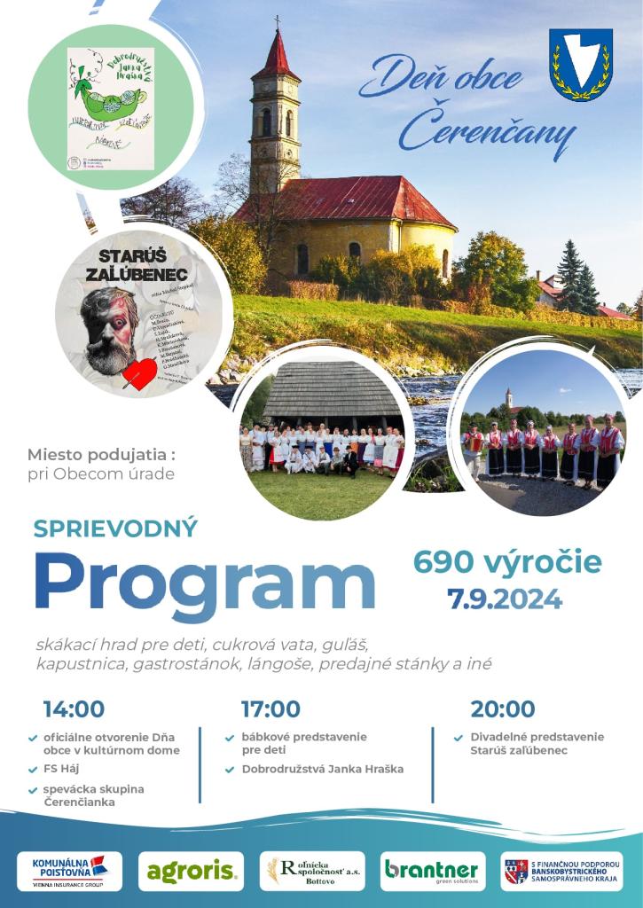 Vážení občania, pozývame Vás na Deň obce Čerenčany, ktorý sa uskutoční dňa 7.9.2024 pri Obecnom úrade v Čerenčanoch.