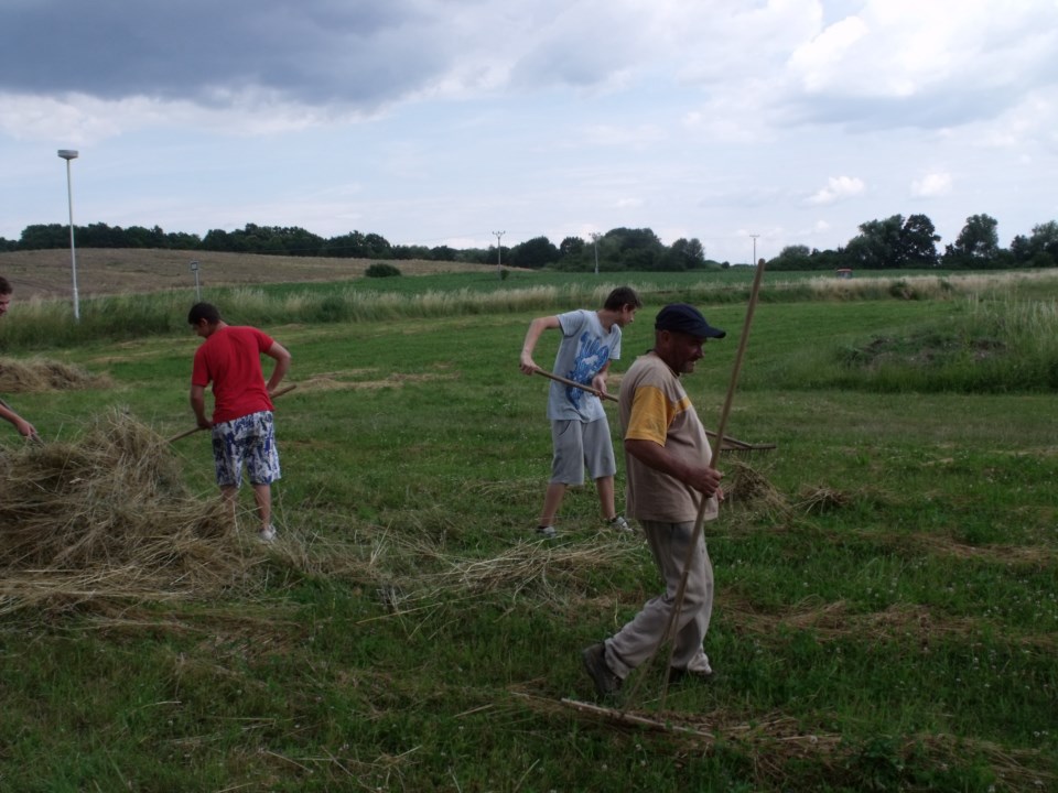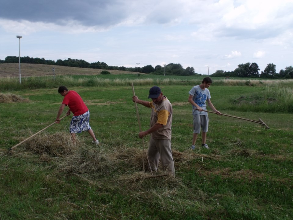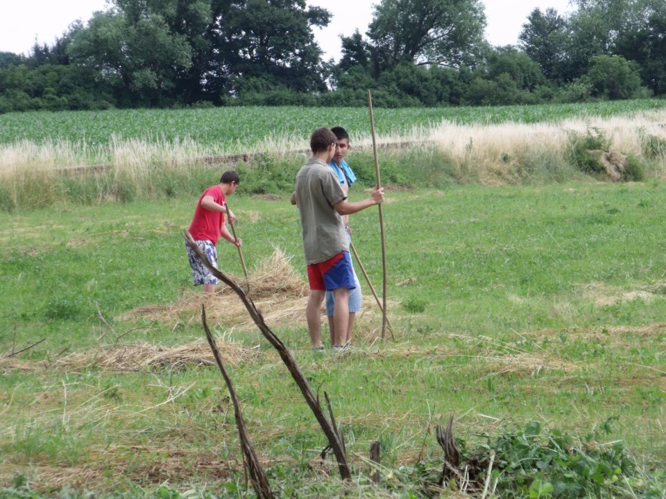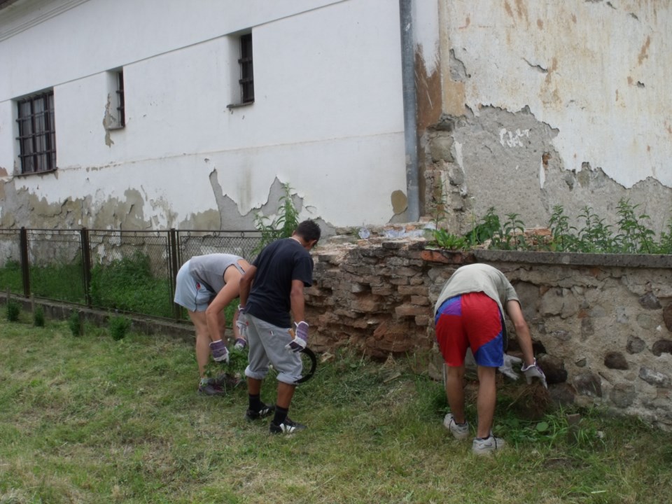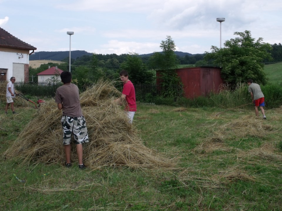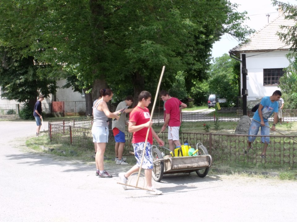 Brigáda s pomocou detí z Reedukačného centra Čerenčany – údržba zelene v obci a cintoríne – 17.6.2014.