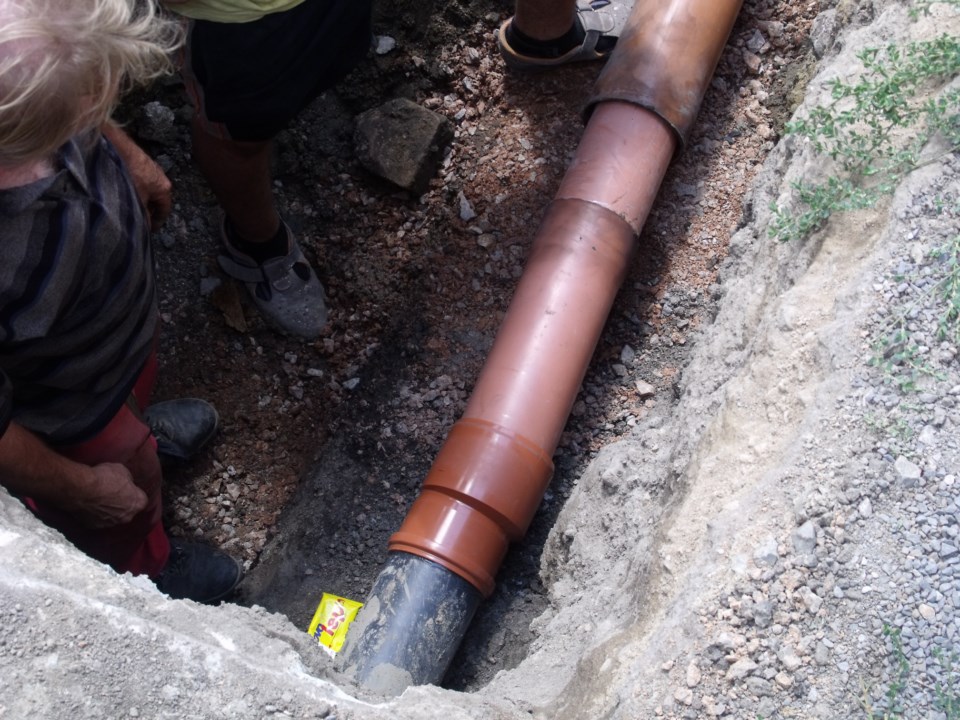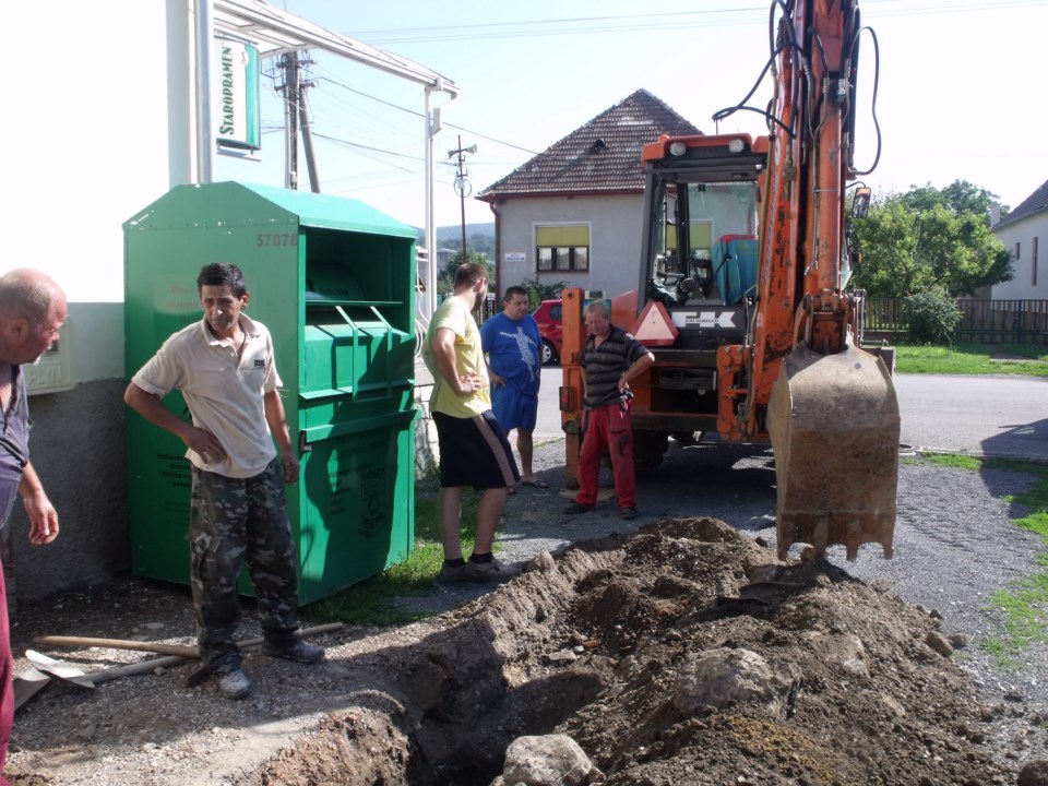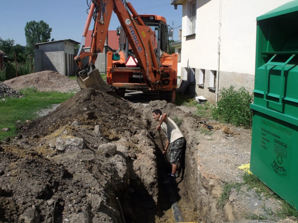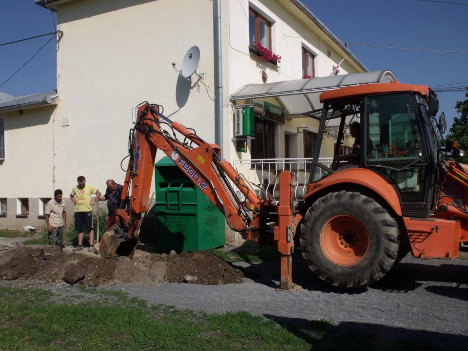 Oprava kanalizácie pri budove obecného úradu – 15.7.2014.
