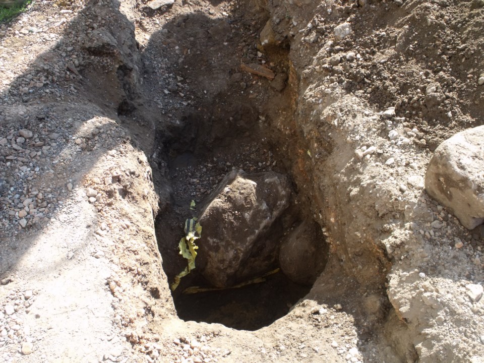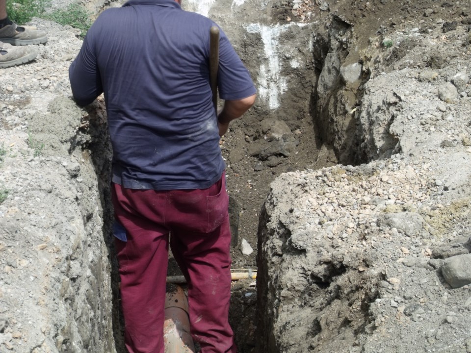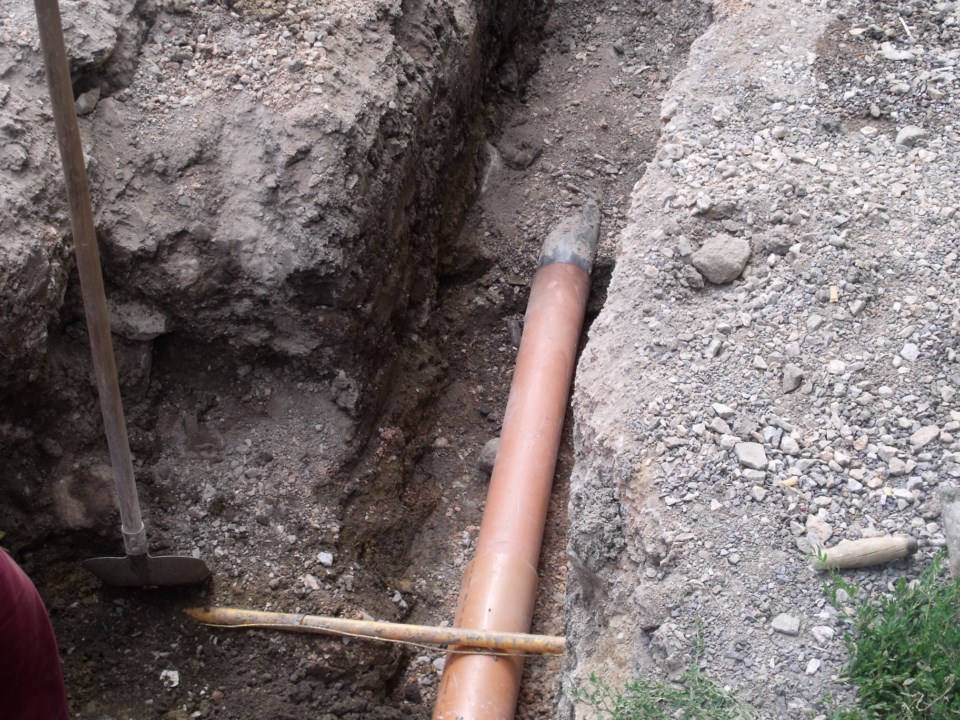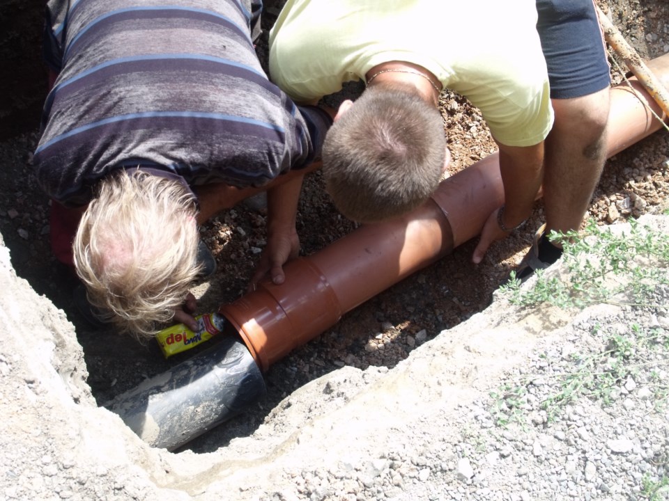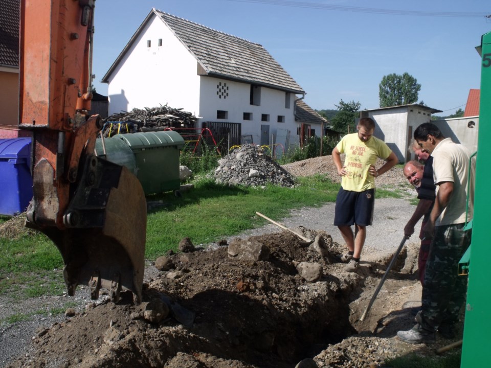 Oprava kanalizácie pri budove obecného úradu – 15.7.2014.