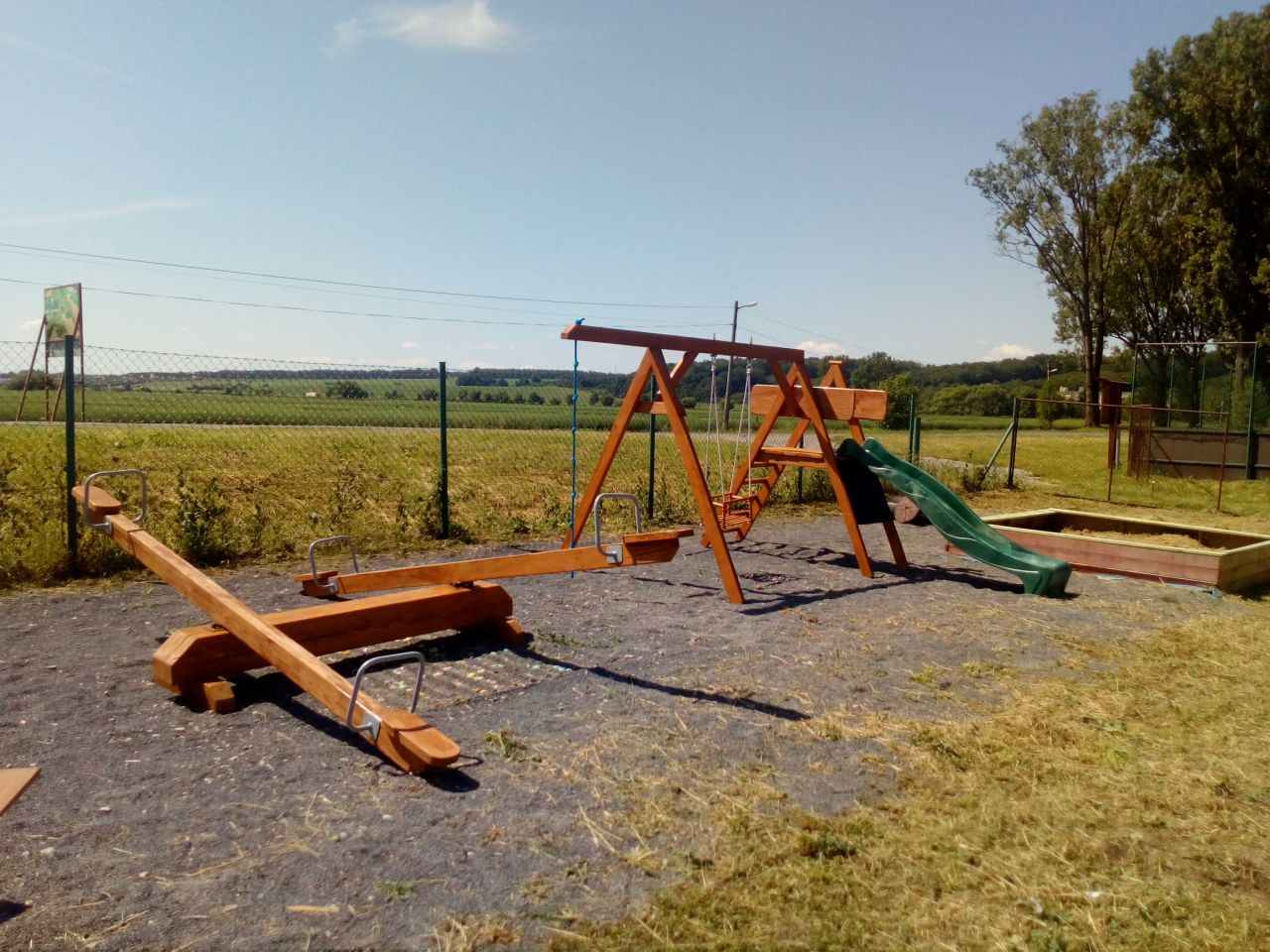 Pre deti sme vytvorili novú plochu na hranie. Nové pieskovisko a nová hracia zostava bude slúžiť všetkým malým deťom.